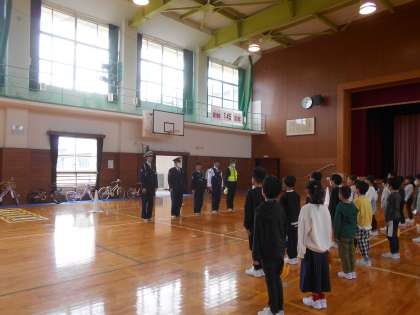4月24日(水)、富山中央警察署交通課の方をはじめ、多くの指導者をお迎えして自転車交通安全教室を行いました。