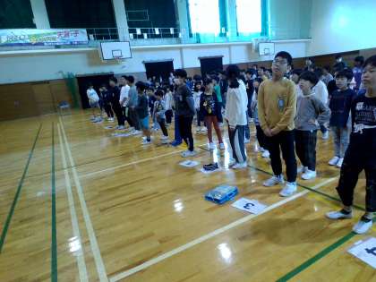 全校で元気に校歌を歌いました。