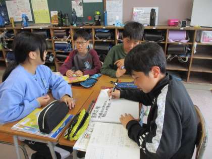 国民主権の考えは、市や国の取組にどのように反映されているのだろう?グループで話し合っています。