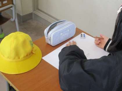 小学校生活でたくさん使用したものや思い出に残っているものをデッサンしました。初めてのことながらも、一生懸命に作品づくりに取り組んでいました。
