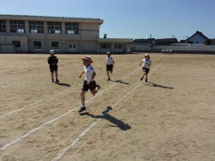 5月2日、きれいな青空の下、初めてはちまきを頭に付けて気持ちよさそうに走っていました。