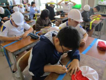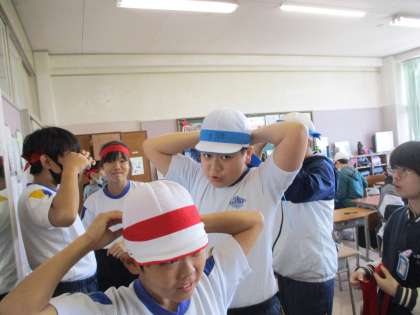 はちまきを締めます。「優勝」「必勝」「楽しもう」・・・熱い思いを込めて、自分のはちまきにしています。