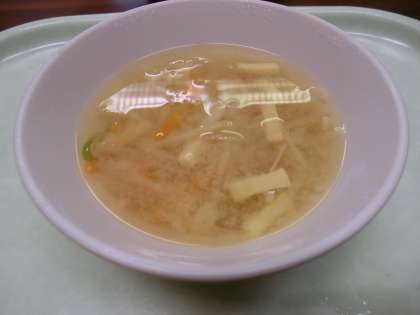みそ汁には、豆腐ではなく、細長く切った高野豆腐が入っていました。高野豆腐は別名凍り豆腐ともいい、豆腐を凍結させ、低温熟成させた後に乾燥させた保存食品です。