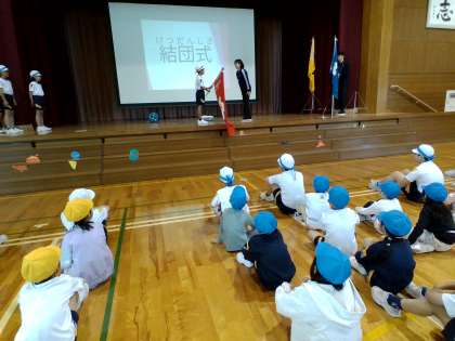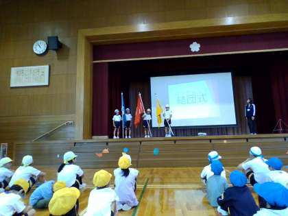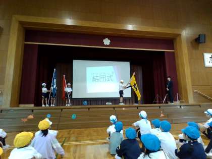 団長が校長先生から団旗を受け取りました。