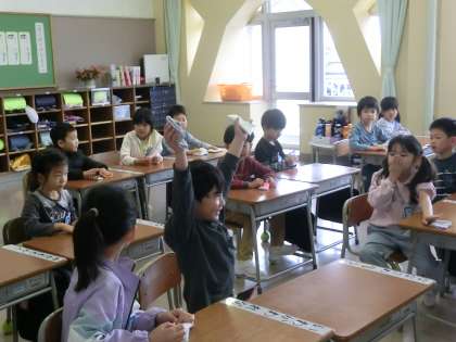 今日から、日直さんが朝の会を進めていました。