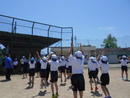 遠くまで声が届くよう、心を合わせて応援練習をしました。