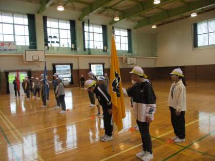 6年生だけで開閉開式の練習を行いました。最高学年として運動会を成功させようという気持ちが態度にあらわれています。