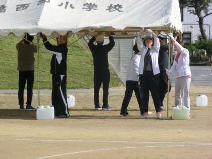 運動会予行練習の準備