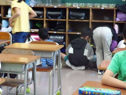 運動会も終わり、教室内を整頓しました。清掃後、机やロッカーの中を整頓し、ものの置き場所を決めてそろえて置きました。向きもそろえるととても気持ちがよいです。