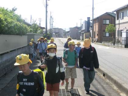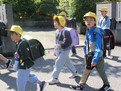 太陽がまぶしい朝です。子どもたちの笑顔もまぶしい!