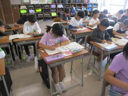 美しい字は、美しい姿勢から!姿勢を意識しながら、書いています。
