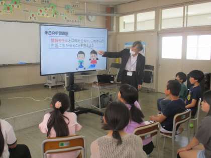 子供たちは、普段何気なく使っているゲームやスマートフォンなどに潜む危険について知りました。また、判断力と強い心で正しく情報を扱うことが大切だと教えてもらいました。普段の使い方を見直し、今後の生活に生かしてくれることを願っています。