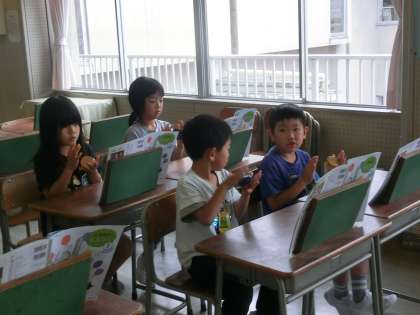 〜拍を感じて〜 かたつむりの歌に合わせて3つのリズムをカスタネットで打ちました。