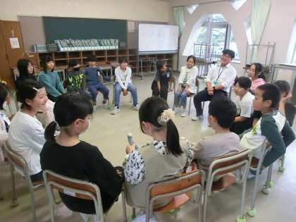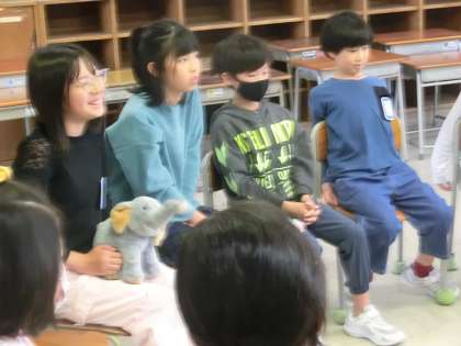日頃、課題に思っていることについて、ひとりひとりが自分の考えを話して、よりよくしていこうとしていました。ゾウのぬいぐるみを持った人が発言者です。