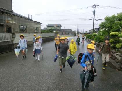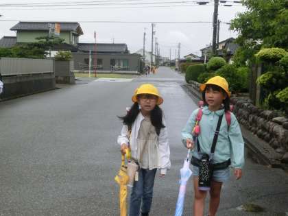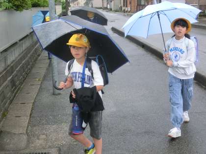 西の空が明るくなって、子どもたち学校に到着する頃には雨はあがりました。