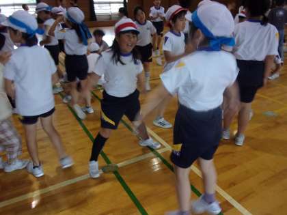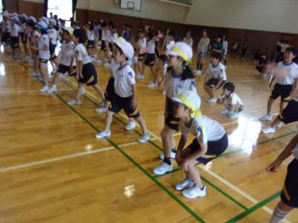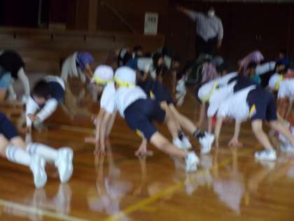 今日は、体育館で出来る体力つくりに取り組みました。動画を見ながら、説明を聞いて体を動かしていました。