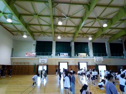 運動会の各団のスローガンのもと、進んで体を動かしています。