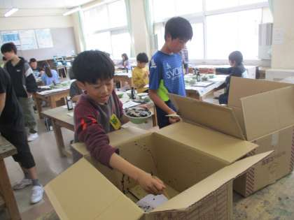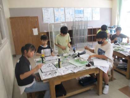 筆の使い方を工夫したり、用具を変えたり・・・昨日よりレベルアップしながら、墨と水でいろいろな表現に挑戦です。