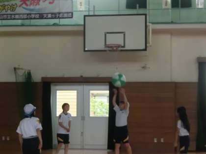 【5年生】 体育 公開日 2024/05/31 更新日 2024/05/31 5年生 「みんなでつなげよう」をめあてに、ビーチバレーボールに取り組んでいました。 ボールを落とさずつなげるために、「はい!」とボールを拾う人が声をだしているチーム、とにかくボールを上にあげて、次の人がボールを拾いやすくしようと考えているチーム、ボールがつながるごとに「1、2、3、4・・・」とみんなで声を合わせて数えているチームなど、工夫していました。