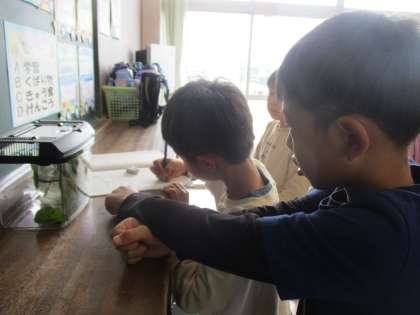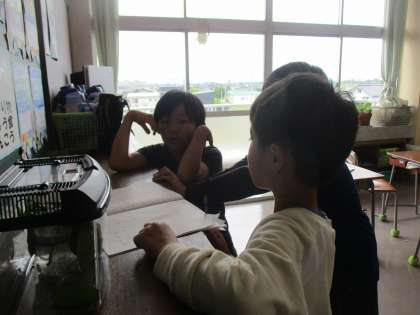 最近アゲハ蝶を育てている3年生に、育て方を質問しに行きました。