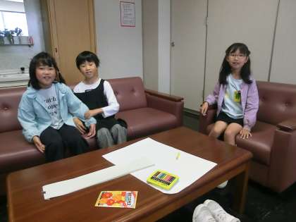 今日は、2年生の3名が相談に来ました。「学校をきれいにしてくれている用務員さんを手本に活動しているが、他の人たちにも手伝ってもらったらもっと学校がきれいになるし、楽しいと思うので呼びかける準備をしているとのこと。