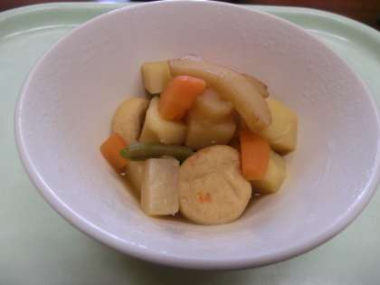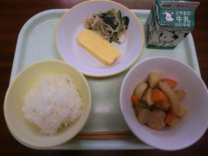 6月3日(月) 今日の献立 公開日 2024/06/03 更新日 2024/06/03 給食室 ・ごはん ・牛乳 ・厚焼き卵 ・小松菜のごま和え ・関東だき 検食 異常なし 関東だきには、にんじん、こんにゃく、じゃがいも、さつま揚げ、いんげん、ミニがんもどきが入っています。具だくさんで、とてもおいしかったです。