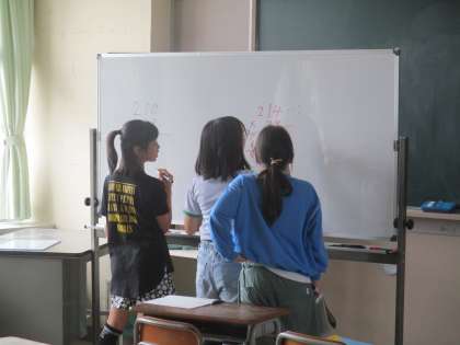 友達と解き方を相談し合ったり、自分たちで問題を考えたりしています。