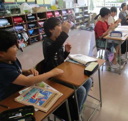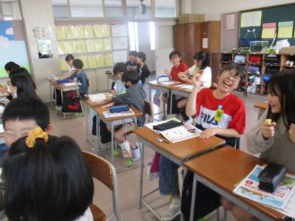誕生日に欲しいものを伝えたり尋ねたりする英語表現の学習をしました。自分の欲しいものを表す単語に慣れるため、ゲームで楽しみながら練習しました。