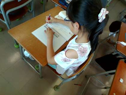 下敷きをしいて、物差しを使って、学習に向かう態度ができています。