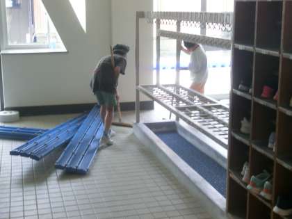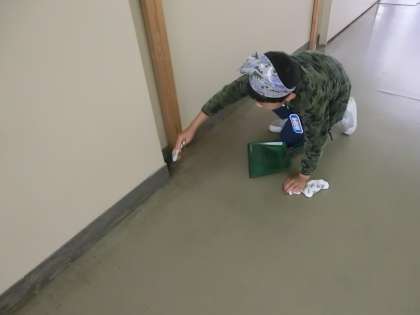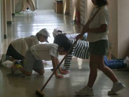なかなか気がつかない汚れやほこりを見つけてはたらいている子どもたちです。