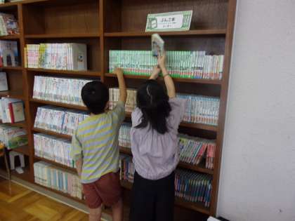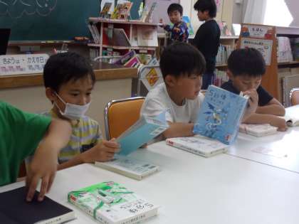 図書室で本を貸りました。じっくり読む本、お気に入りの本と2冊選ぶことができました。