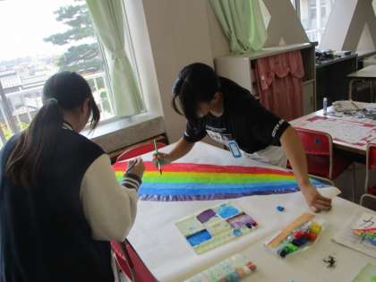 学級目標をつくっています。「よし!がんばろう」と思えるものに!