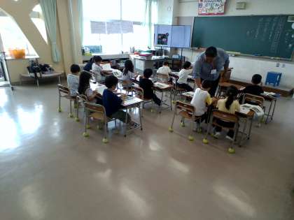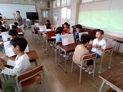 1年生は国語、2年生は音楽、6年生は国語の学習をしていました。