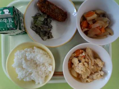 6月10日 今日の献立 公開日 2024/06/10 更新日 2024/06/10 給食室 ・ご飯 ・牛乳 ・魚の竜田揚げ ・よごし ・卵とじ (汁物のお椀は卵入りと卵なしの二種類です) 検食、異常なし。 農林水産省のHPによると、「『よごし』は富山の郷土料理で、夜に作り置きをしておいて翌日の朝に食べることから『夜越し』の意味で『よごし』と呼ばれるようになった」そうです。