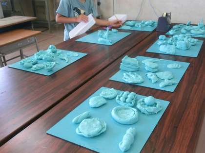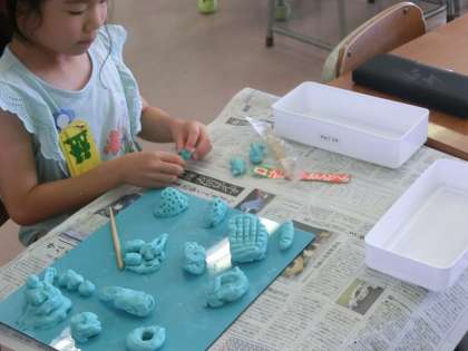 ハンバーグ、たこ焼き、イチゴのショートケーキなど、どれもおいしそうです。ラーメンの麺を一本一本こだわって作ってある作品もありました。