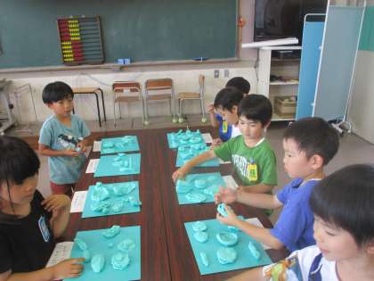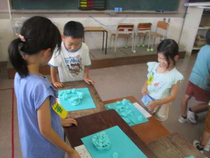 ねんどを使用して、ごちそうを作りました。お互いのごちそうで最後にパーティーを開きました。