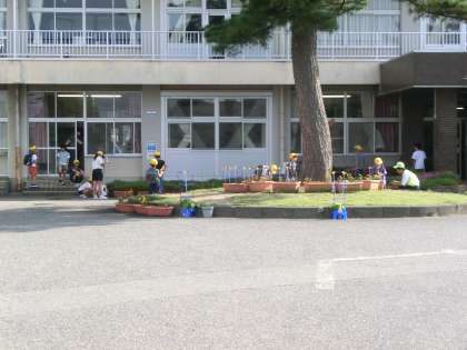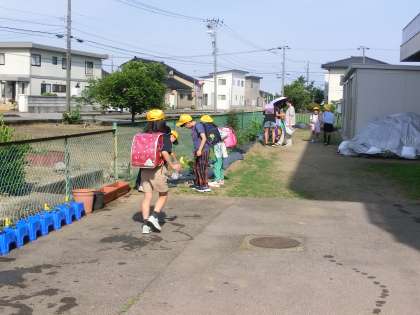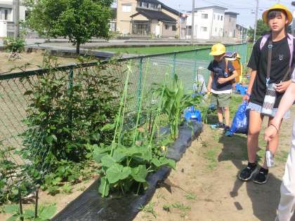 植物や野菜に水をあげたり、観察したりしている子どもがたくさんいます。