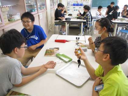 脈拍数と心臓の拍動数を調べています。気分はお医者さん!?
