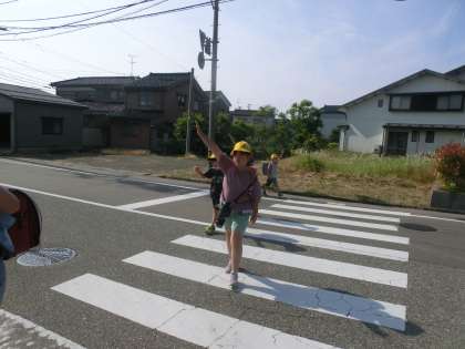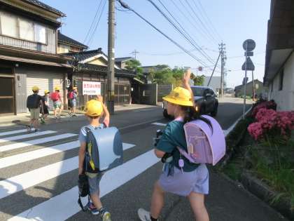 横断歩道では、手を挙げて、車の運転手さんとアイコンタクトを取りながら、安全に渡る子どもが増えてきました。