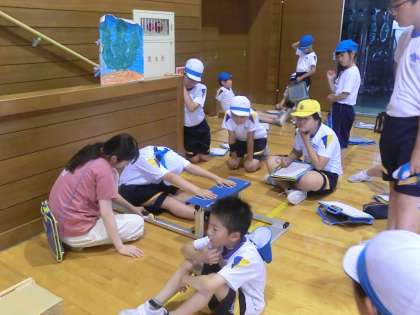 ファミリーで体力測定を行いました。上級生が下級生にやり方を教えたり、記録をとったりしています。ファミリーの仲間を応援する姿も見られました。