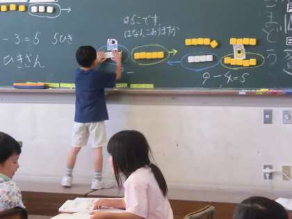 ブロックの操作活動を通して、数の「ちがい」の計算について考えました。