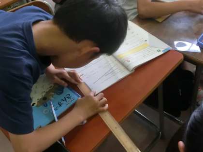 ものさしを使って直線を書いたり、ものさしを使って長さを測ったりしていまいした。