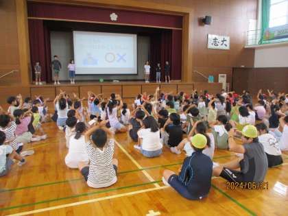 待ちに待ったプール開きです!プールの約束を確認したり、ファミリーの目当てを聞き合ったりしました。