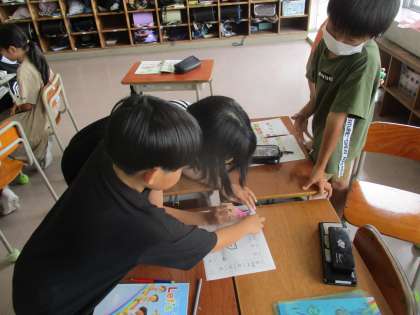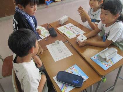 時刻を尋ねる表現や答える表現を使ってサイコロゲームを楽しみました。