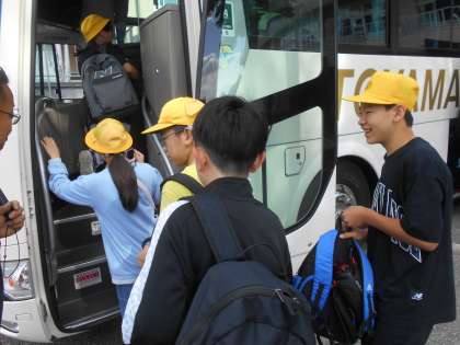荷物をバスに積み込んで、バスに乗り込んで行きました。
