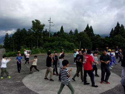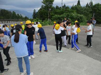 水橋中部小学校のみなさんと、1日目の活動を紹介し合い、じゃんけんゲームで交流しました。