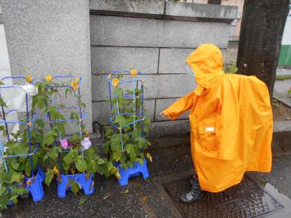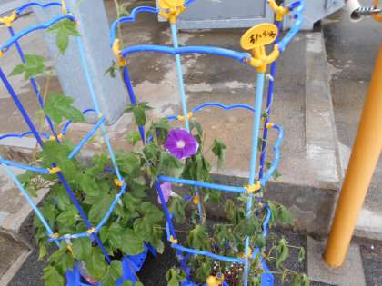 1年生は、自分のアサガオに大きな花が咲いていて驚き、喜んでいました。