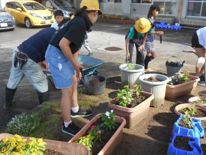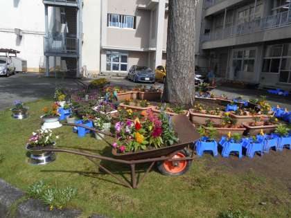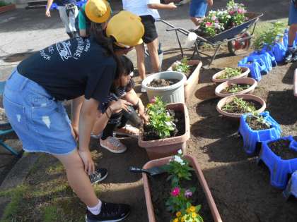 松の木の周りを花いっぱいにしよう! 公開日 2024/07/03 更新日 2024/07/03 2年生 朝から、鉢を持ってきてくれた子どもたちが、気に入った花の苗を植えました。環境委員会ももっと花を増やそうとプランターに植えています。どんどん、花いっぱいになり、松の木の下がすてきな空間になってきました。