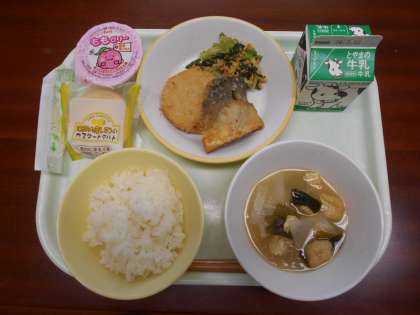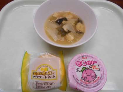 7月3日 今日のこんだて 公開日 2024/07/03 更新日 2024/07/03 給食室 ・ごはん ・牛乳 ・入り大豆和え ・具だくさん汁 <選択献立> ・魚のカレー揚げ または ハムチーズフライ ・ももゼリー または レモンタルト 検食 異常なし 今日は選択献立です。どちらもおいしかったです。