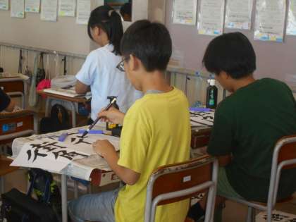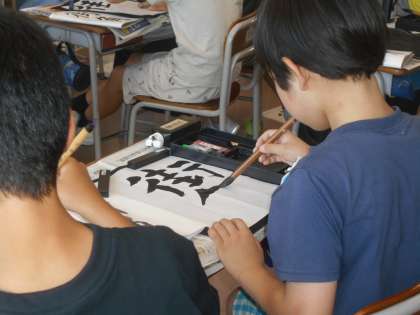 「街」という漢字の三つの部分のバランスに気をつけて、真剣に練習していました。